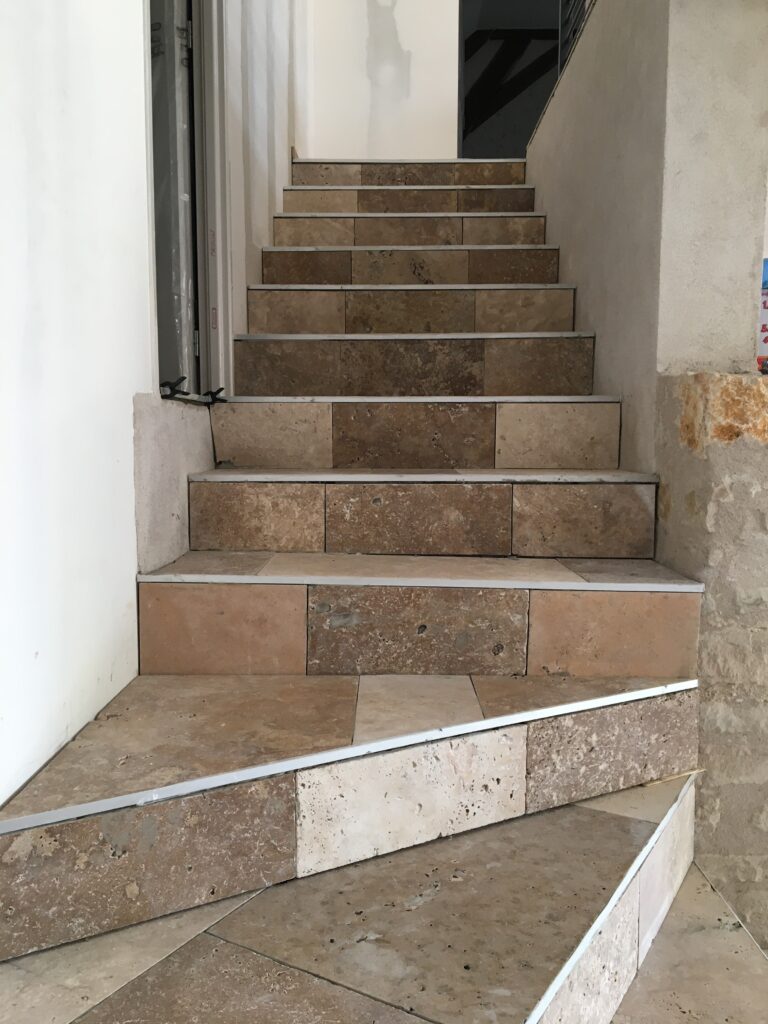 Nous réalisons la pose de carrelage, travertin, pierres naturelles.